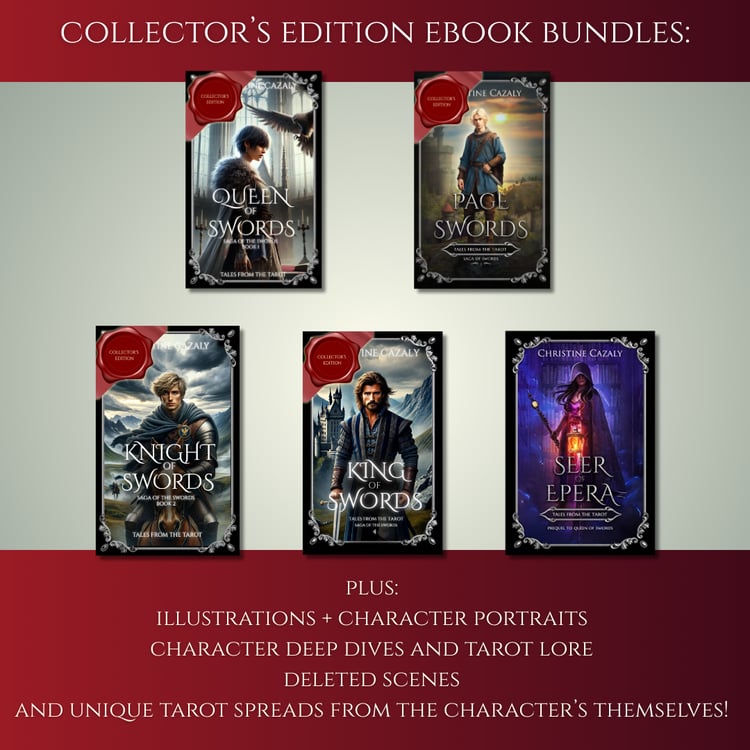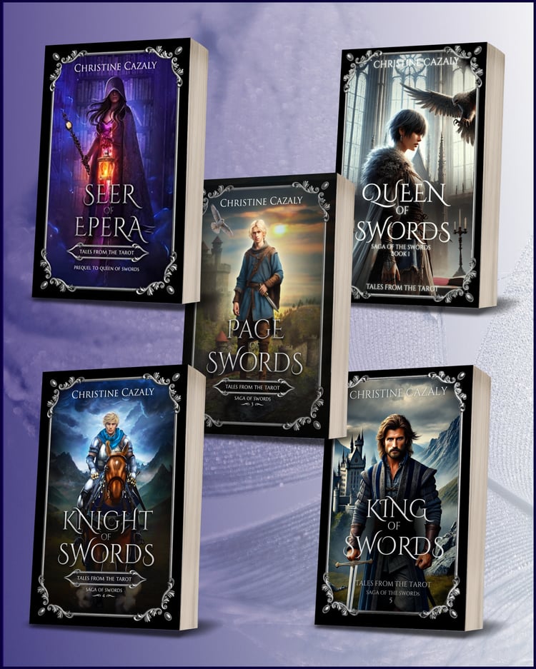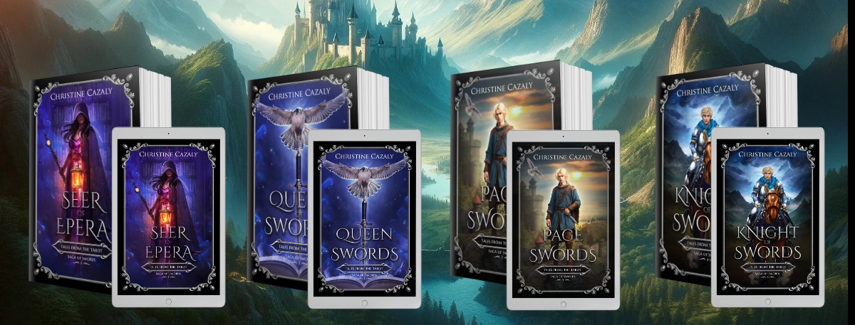 Christine has spent a lifetime crafting Arcanis - an epic fantasy realm where the Court cards of Tarot rule four mighty nations. Each series brings a different suit to life, from fire-wielding warriors to sky-bound adventures.